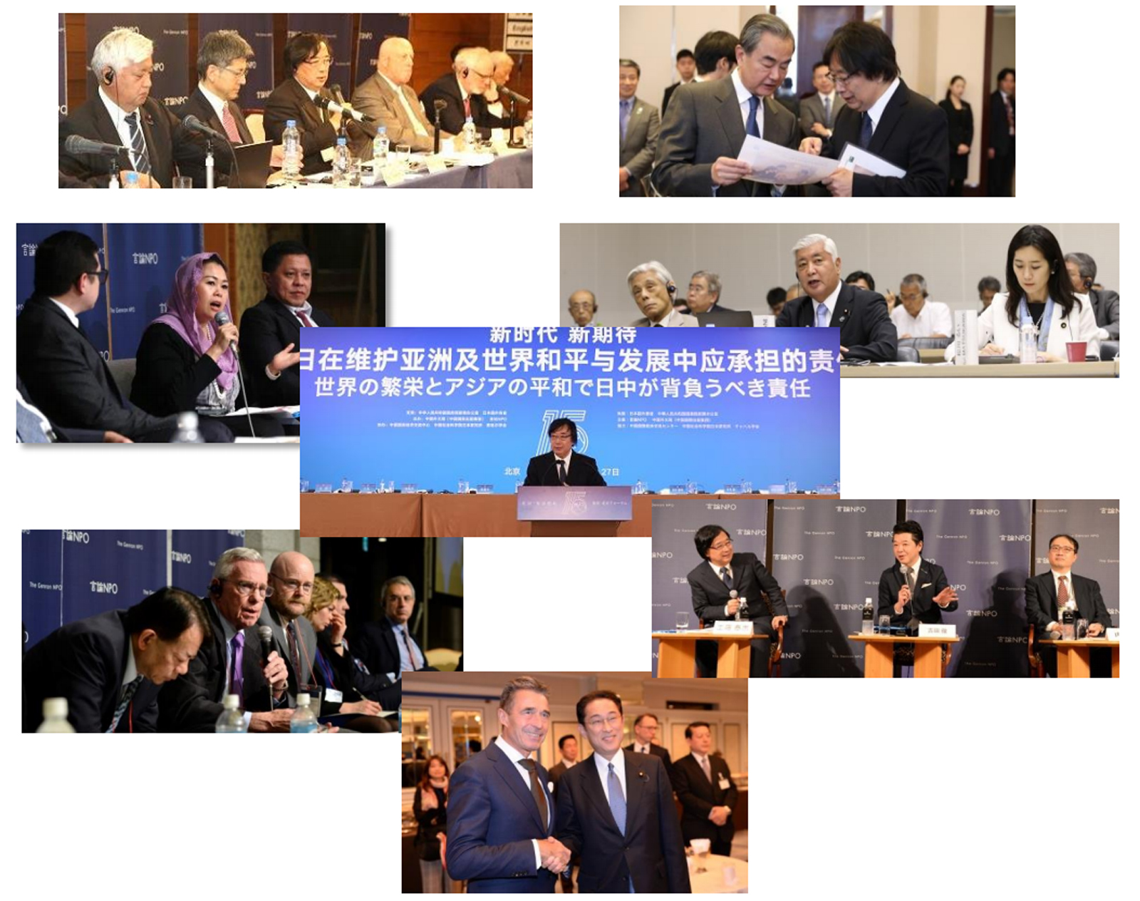 東京会議、アジア平和会議、2.東京-北京フォーラム、日韓未来対話といった国際会議を国際的に著名なシンクタンク等と合同で開催しております。