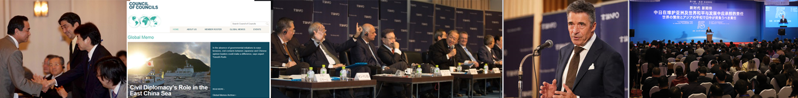 言論 NPO はまだ若い小さなシンクタンクですが、活動は世界の最前線に立っています。2012年には、米国の外交問題評議会(CFR)が設立した世界を代表する 20 カ国のシンクタンク会議「カウンシル・オ ブ・カウンシルズ(CoC) 」に日本から唯一選出されました。