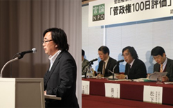 続けて、民主党政権の実績評価と民主党・自民党のマニフェスト評価を発表し、菅改造内閣発足後100日目にあたる12月25日には「菅政権の100日評価」を記者会見で発表しました。