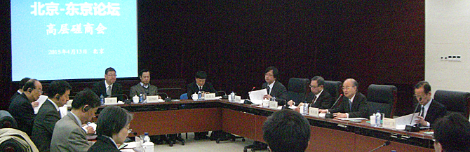 On Monday April 13, the Japanese and Chinese Executive Committees for the 11th Tokyo-Beijing Forum met for the Preliminary Conference. The delegation from Japan consisted of the chairman and vice-chairman of the Japanese committee, Yasushi Akashi (Chairman of the International House of Japan) and Yuji Miyamoto (former Japanese ambassador to China), Hirohide Yamaguchi (former Deputy Governor of the Bank of Japan) and Yasushi Kudo (President of The Genron NPO). They were joined by Zhou Mingwei (Director of China International Publishing Group (CIPG)), Zhao Qizheng (Dean of the School of Journalism and Communication at Renmin University), Wu Jianming (former Chinese ambassador to France), Li Wei (Director of the Institute of Japanese Studies at the Chinese Academy of Social Sciences), Xu Qixin (General Secretary of China-Japan Relationship and History Studies Association) and Zhang Yansheng (General Secretary of the Academic Committee of National Development and Reform Commission) from the Chinese committee.