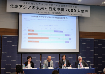 Kudo, as moderator, first asked how the U.S. viewed Northeast Asia in 10 years' time, especially as China and South Korea seem to underestimate the existence of Japan.