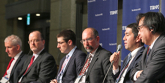 The panelists for the first session were: David Nakamura, a White House correspondent for The Washington Post; David Feith, an editorial page writer for The Wall Street Journal Asia; Oren Dorell, a foreign affairs and breaking news reporter for USA Today; Michael Den Tandt, a national columnist with Postmedia News; David Munk, an international news editor (Asia Pacific) of The Guardian; Glen S. Fukushima, a Senior Fellow at the Center for American Progress and former Deputy Assistant U.S. Trade Representative for Japan and China; Yasushi Watanabe, a professor at the Shonan Fujisawa Campus, Keio University, and Seiichi Kondo, president of the Kondo Research Institute of Cultural and Foreign Affairs and former Commissioner of the Agency for Cultural Affairs.