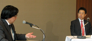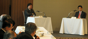 その後、工藤との対談に移りました。ここでは「アベノミクスの『新三本の矢』をどう進めていくのか」「潜在成長率がなかなか上がらない現状をどう打破するか」「若者の雇用の安定をどう図るか」「河野太郎行政改革担当相が提起した厚生労働省三分割案をどう考えるか」など多岐にわたるテーマで活発な議論が交わされました。