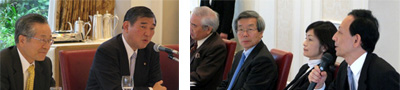 まず、代表工藤が、言論NPOが昨年12月に行った有識者アンケートから、日本の未来に向けての競争が政治の中で始まっていないこと、政党政治に対する不信が広がっていることを説明し、この大きな政治の変化の中でどのように自民党を立て直し、日本の未来のためにどう責任を果たすのか、について石破氏からお話をお聞きしたいと問題提起しました。これに対して、石破氏は自らの政治家としての体験を踏まえて、今の政党や政治家の求められている覚悟や政界再編をどう考えるか、日本の将来に向けた国家の根本問題に関する考えを一時間に渡り、一気に熱く語りました。前日には舛添要一氏が離党するなど大揺れが続く自民党ですが、日本の政治の行方に参加者の関心は高く、約30人の言論NPOのメンバーや関係者との意見交換も白熱しました。(発言の詳細は後日公開します)