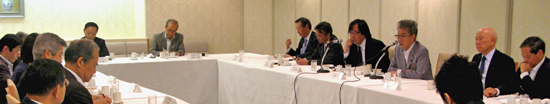 渡部氏の発言を受け、代表工藤が「「挙国一致」というのは現在の菅首相を前提として想定しているのか」とその真意を問うと、渡部氏は「そんな小さなことではない。国益優先だ」などと答えました。さらに、原子力発電について、「事故を絶対に繰り返さないという方向はたしかだが、それは新増設を止める中で安全性を確保していくということなのか、それとも現在稼動している原発の停止も視野に入れているのか」との問いに対しては、国民の声を考えれば、新増設は困難ではないかとの見方を示す一方で、既存原発の方向性については、「安全確保の前提の中で、当分動かしていくということ」と述べました。