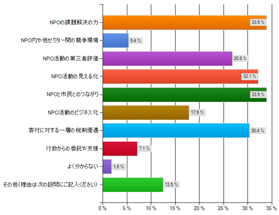 ○NPOが、公の機能を担うという基本理念の国家運営での明確な位置づけ。今は単なるボランティア団体のように見える。(50代、会社員)