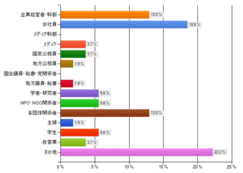 ○日本の民主主義が正しく機能するためには、政治家であれNPOであれ、活動の透明性が生命線である。言論NPOがこの点において特に日本の民主主義に貢献していくものと確信している。(40代、国家公務員)