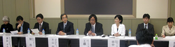 記者会見には、代表工藤のほか、片山信彦氏(ワールド・ビジョン・ジャパン常務理事・事務局長)、加藤志保氏(チャイルドライン支援センター事務局長)、黒田かをり氏(CSOネットワーク共同代表)、関尚士氏(シャンティ国際ボランティア会事務局長)、多田千尋氏(東京おもちゃ美術館館長、日本グッド・トイ委員会代表)、田中弥生氏(大学評価・学位授与機構准教授)、根本悦子氏(ブリッジ・エーシア・ジャパン理事長)、堀江良彰氏(難民を助ける会事務局長)、山内直人氏(大阪大学大学院国際公共政策研究科教授)が参加しました。