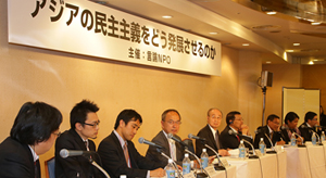 ハッサン氏は、「民主主義において、アジアは大きなチャレンジに直面しているが、これからも民主主義を推進していくべき、ということでは地域のコンセンサスは得られている。そのためには、日本とインドネシア、さらには韓国など成熟した民主主義国が新興民主主義国に協力していくことが必要」と訴え、さらに、「『21世紀はアジアの世紀』と言われているが、政治的な協力体制はまだまだ構築できていない。この状況で、アジアで紛争が起こったら大変なことになる。各国が協力体制の構築に真摯に向き合っていくべき」と主張しました。