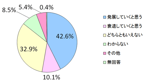 最も多かった回答は「発展していくと思う」の42.6%で、「衰退していくと思う」の10.1%を大きく上回った。