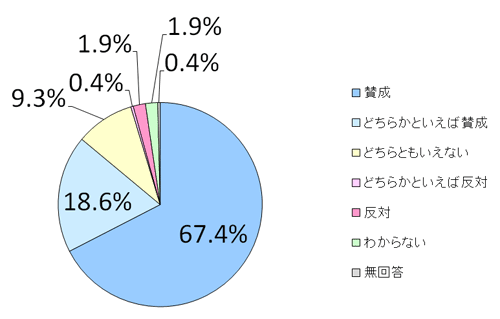 その結果、「賛成(「どちらかといえば」を含む)」が86.0%と圧倒的多数を占め、「反対(「どちらかといえば」を含む)」はわずか2.3%に過ぎなかった。