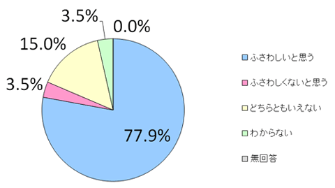 このように多くの有識者の賛同を得た「不戦の誓い」であるが、これは将来、北東アジア地域における平和構築のための合意として、ふさわしいものなのか。賛同した有識者に尋ねてみたところ、ここでも「ふさわしいと思う」と回答した有識者は、77.9%と8割近くを占めた。