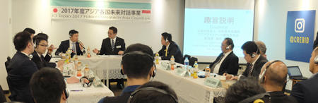 今回のテーマは、アジアの現状、課題、目指すべき未来の三つ。今回の対話を企画実行した日本青年会議所アジアアライアンス構築委員会委員長の藤原涼氏が、アジアの現状を報告したのち、議論に入りました。