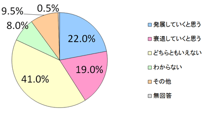 その結果、「どちらともいえない」が41.0%で最も多く、日本の有識者は、デモクラシー発展の可能性について、慎重な見方を示している。一方、「発展していく」は22.0%で、「衰退していくと思う」の19.0%をわずかながら上回った。