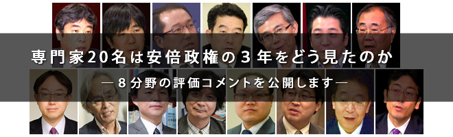 今回の実績評価には、各分野の一線で活躍する40氏を超える専門家の方々にご協力いただいています。このうち20名の方々から、安倍政権が打ち出した政策をどう見ているのか、自身の評価とその理由に関するコメントを公開することの承諾をいただきました。言論NPOの評価結果と合わせてご覧ください。