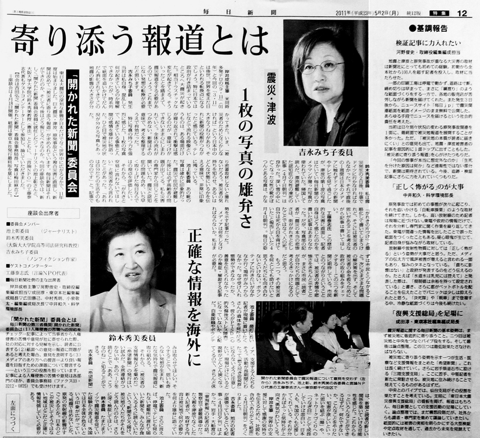 メディア掲載 【毎日新聞】経験ない複合災害 寄り添う報道とは 2011年5月02日 Facebookでシェア Twitterに投稿 メールで送る 印刷 entry_body=2011/05/2 毎日新聞 拡大する 拡大する entry_more= 2011/05/2 毎日新聞 拡大する 拡大する Facebookでシェア Twitterに投稿 メールで送る 印刷