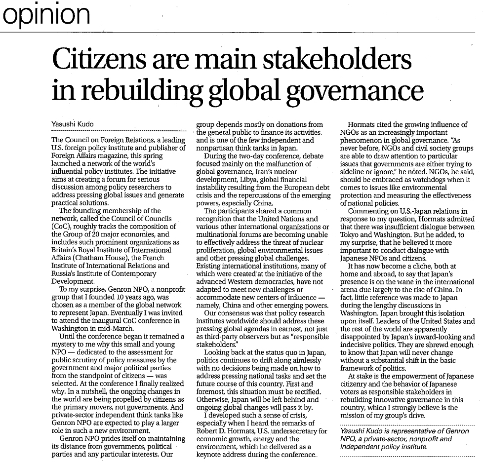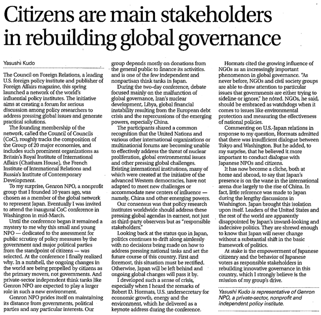 2012/05/30 ジャパンタイムズ 朝刊 13面