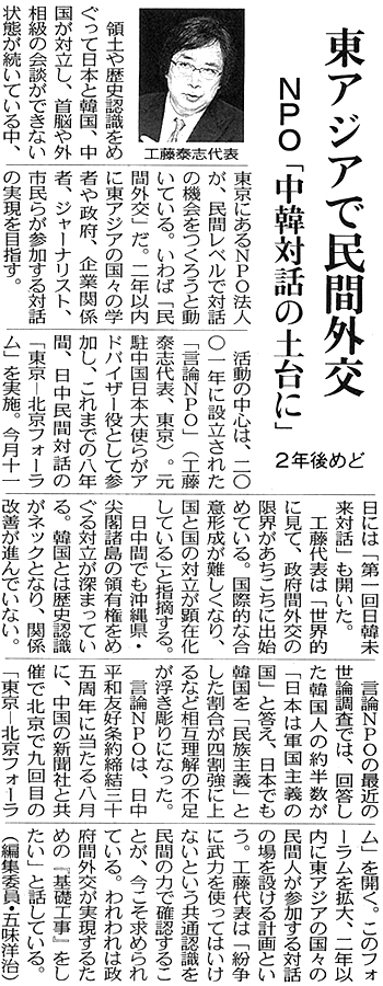 メディア掲載 【東京新聞】東アジアで民間外交 NPO「中韓対話の土台に」 2013年5月28日 Facebookでシェア Twitterに投稿 メールで送る 印刷 entry_body=2013/05/28 東京新聞 朝刊6面 entry_more= 2013/05/28 東京新聞 朝刊6面 Facebookでシェア Twitterに投稿 メールで送る 印刷