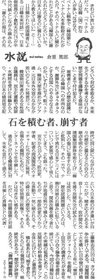 メディア掲載 【毎日新聞】石を積む者、崩す者 2013年5月16日 Facebookでシェア Twitterに投稿 メールで送る 印刷 entry_body=2013/05/15 毎日新聞 朝刊3面 entry_more= 2013/05/15 毎日新聞 朝刊3面 Facebookでシェア Twitterに投稿 メールで送る 印刷