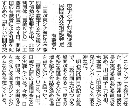 メディア掲載 【読売新聞】東アジア対話促進 民間外交組織発足 有識者ら 2013年12月05日 Facebookでシェア Twitterに投稿 メールで送る 印刷 entry_body=2013/12/05 読売新聞 朝刊6面 entry_more= 2013/12/05 読売新聞 朝刊6面 Facebookでシェア Twitterに投稿 メールで送る 印刷
