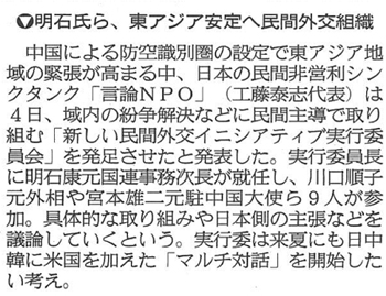 メディア掲載 【産経新聞】明石氏ら、東アジア安定へ民間外交組織 2013年12月05日 Facebookでシェア Twitterに投稿 メールで送る 印刷 entry_body=2013/12/05 産経新聞 朝刊9面 entry_more= 2013/12/05 産経新聞 朝刊9面 Facebookでシェア Twitterに投稿 メールで送る 印刷