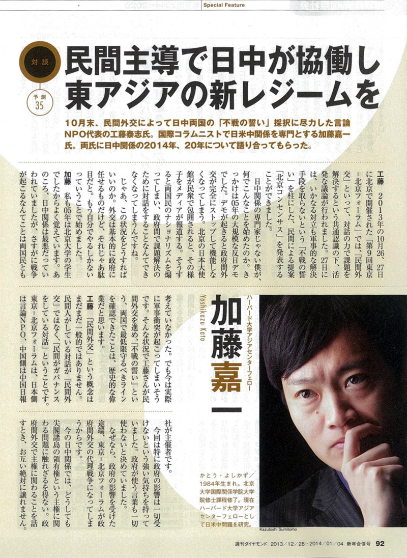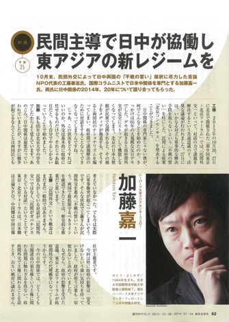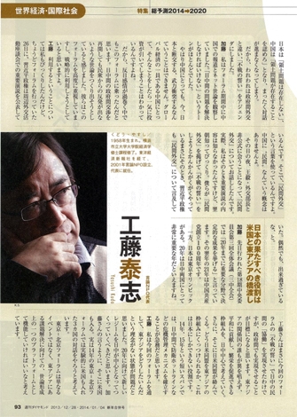 メディア掲載 【週刊ダイヤモンド】民間主導で日中が協働し東アジアの新レジームを 2013年12月25日 Facebookでシェア Twitterに投稿 メールで送る 印刷 entry_body=週刊ダイヤモンド 2013/12/28 - 2014/01/04 新年合併号 拡大する 拡大する entry_more= 週刊ダイヤモンド 2013/12/28 - 2014/01/04 新年合併号 拡大する 拡大する Facebookでシェア Twitterに投稿 メールで送る 印刷