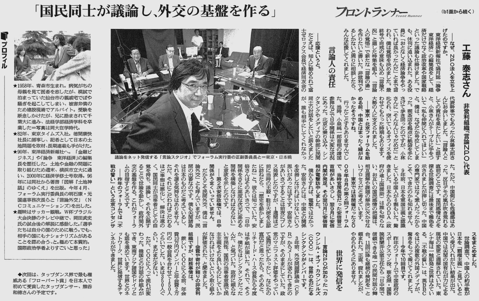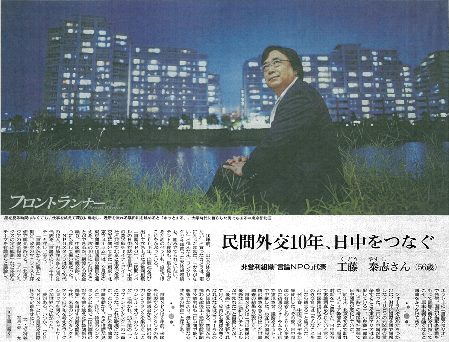 2014/08/30 朝日新聞朝刊 別刷『be on Saturday』1面・3面 「フロントランナー」