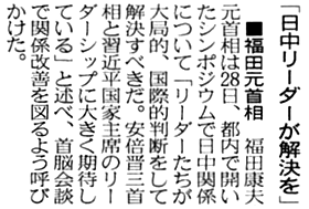 メディア掲載 【日本経済新聞】日中リーダーが解決を 福田元首相 2014年10月07日 Facebookでシェア Twitterに投稿 メールで送る 印刷 entry_body=2014/09/29 日本経済新聞 朝刊2面 entry_more= 2014/09/29 日本経済新聞 朝刊2面 Facebookでシェア Twitterに投稿 メールで送る 印刷