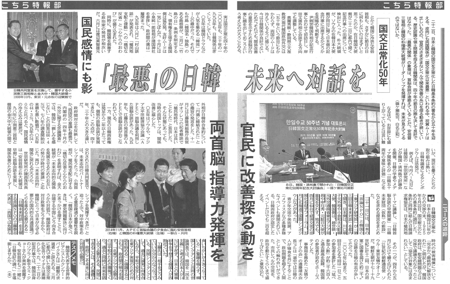 メディア掲載 【東京新聞】『最悪』の日韓 未来へ対話を 2015年6月13日 Facebookでシェア Twitterに投稿 メールで送る 印刷 entry_body=2015/06/13 東京新聞 朝刊22・23面 拡大する entry_more= 2015/06/13 東京新聞 朝刊22・23面 拡大する Facebookでシェア Twitterに投稿 メールで送る 印刷