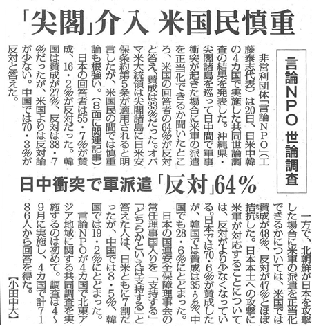 メディア掲載 【毎日新聞】『尖閣』介入 米国民慎重 日中衝突で軍派遣『反対』64% 2015年10月21日 Facebookでシェア Twitterに投稿 メールで送る 印刷 entry_body=2015/10/21 【毎日新聞】 朝刊2面 2015/10/21 【毎日新聞】 朝刊8面 entry_more= 2015/10/21 【毎日新聞】 朝刊2面 2015/10/21 【毎日新聞】 朝刊8面 Facebookでシェア Twitterに投稿 メールで送る 印刷