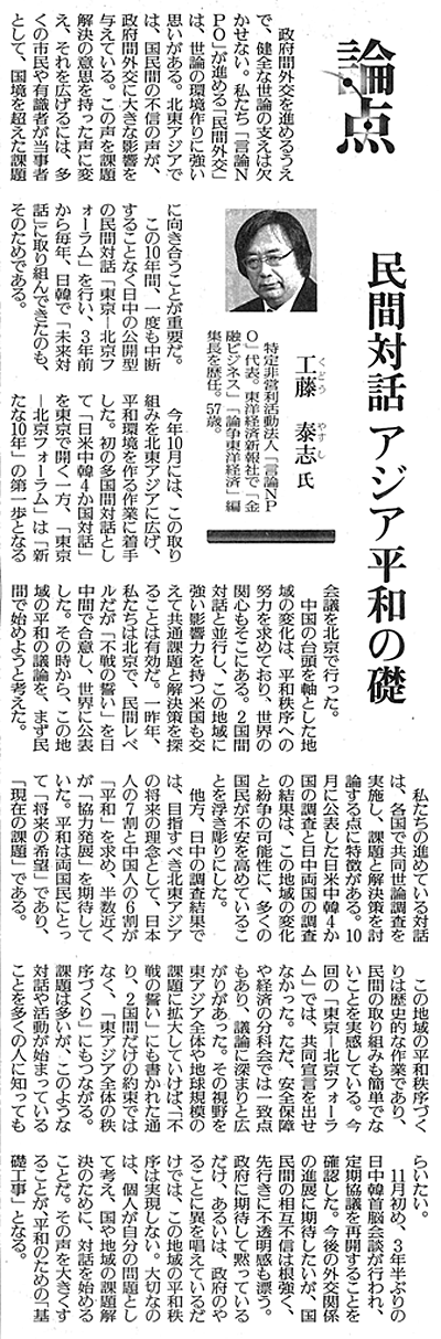 メディア掲載 【読売新聞】論点 民間対話アジア平和の礎 2015年11月26日 Facebookでシェア Twitterに投稿 メールで送る 印刷 entry_body=2015/11/26 【読売新聞】 朝刊11面 entry_more= 2015/11/26 【読売新聞】 朝刊11面 Facebookでシェア Twitterに投稿 メールで送る 印刷