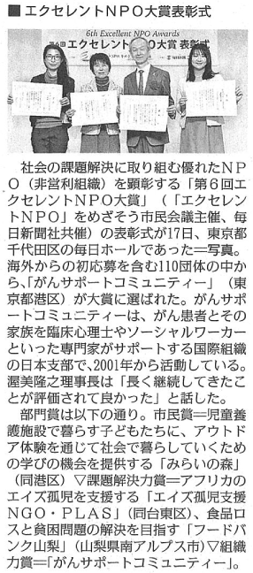 メディア掲載 【毎日新聞】エクセレントNPO大賞表彰式 2019年1月18日 Facebookでシェア Twitterに投稿 メールで送る 印刷 entry_body=2019/1/18 毎日新聞 朝刊26面 entry_more= 2019/1/18 毎日新聞 朝刊26面 Facebookでシェア Twitterに投稿 メールで送る 印刷