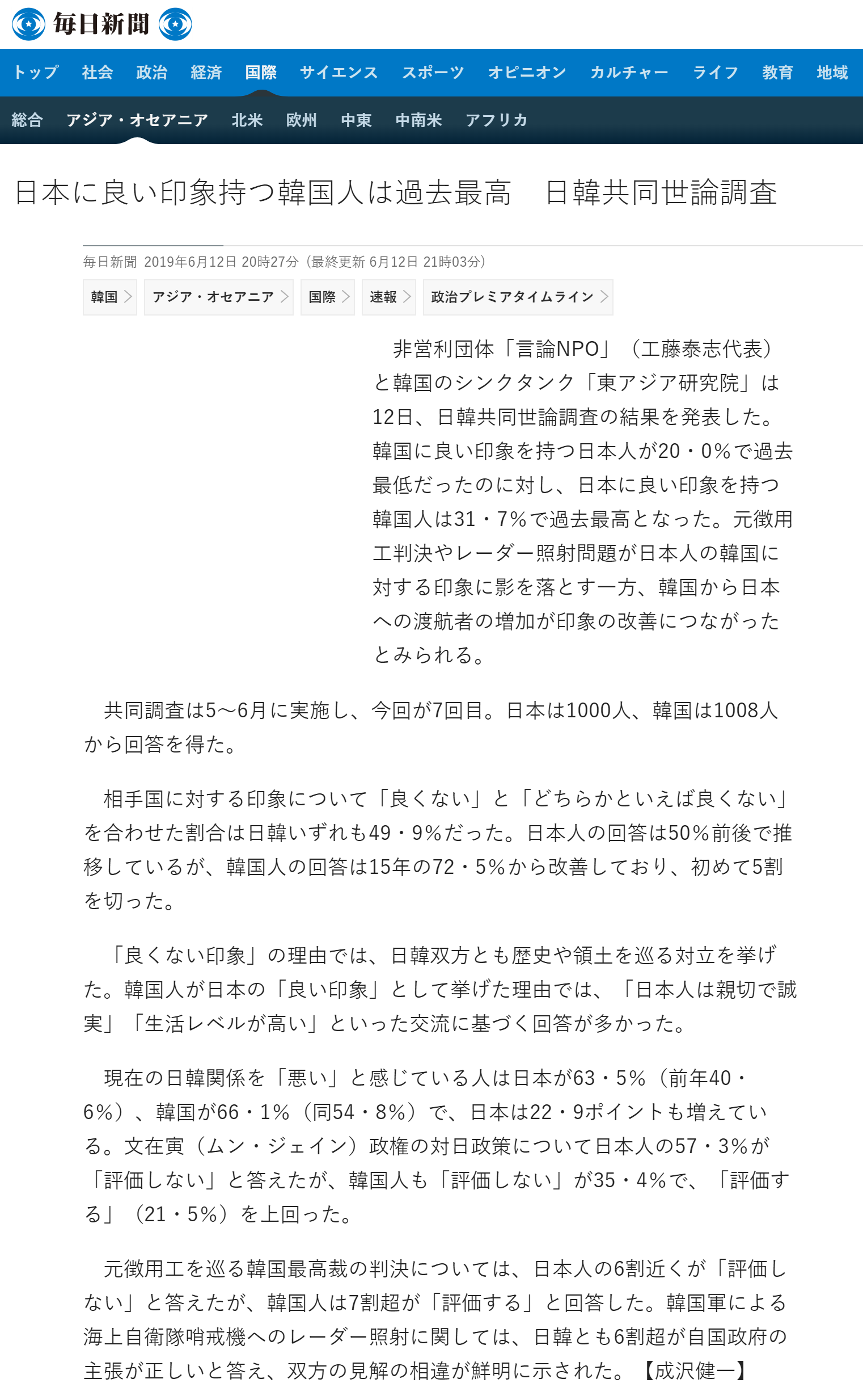 2019/6/13 毎日新聞 朝刊5面