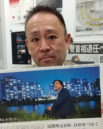 このたびは誠におめでとうございます。私が言論NPO代表の工藤泰志さんと出会ってから、ほどなくして工藤さんには弊紙・朝日新聞の「フロントランナー」という大型記事にご登場いただきました。2014年8月のことです。経済同友会の元代表幹事、故・小林陽太郎さんに工藤さんが初めて会ったとき、小林さんから「私も仲間に入れてほしい」と言われ、工藤さんが号泣したというエピソードが、とても印象に残っています。