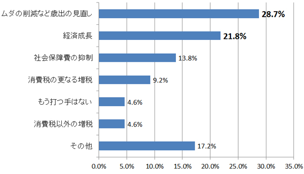 問4. あなたは、日本が財政再建を果たすために、何が最も大事だと思いますか。【単数回答、N=87】