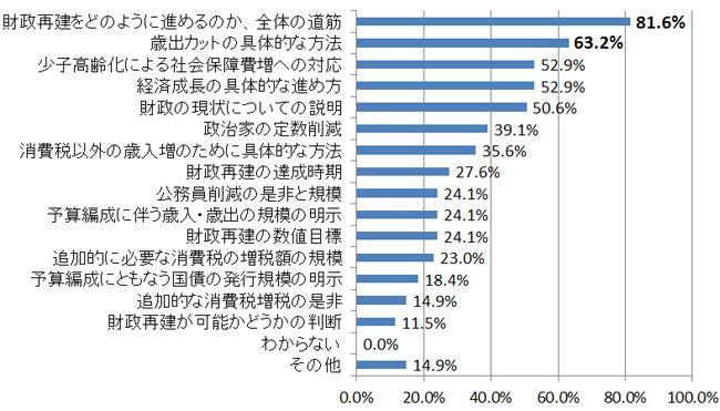 問5. あなたは、次の選挙で、政治家や政党は財政再建化のために何を明らかにしなければならないと思いますか。【いくつでも回答、N=87】
