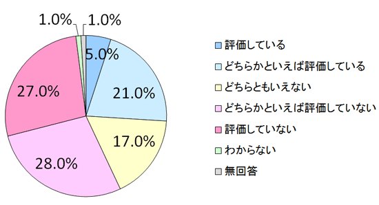 それに対し、「評価している」(5.0%)、「どちらかといえば評価している」(21.0%)という肯定的な評価は2割台にとどまりました。
