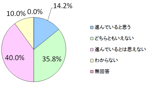最後に、「東北地方が将来のビジョンに基づき、復興に向けて進んでいるか」と尋ねたところ、「進んでいるとは思えない」との回答が40.0%と最多となり、「どちらともいえない」が35.8%で続きます。一方、「進んでいると思う」との回答は14.2%にとどまりました。