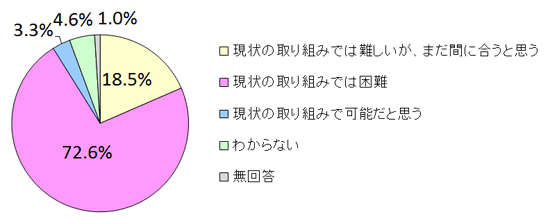 政府は今年6月、2020年にプライマリーバランスを黒字化することを目標とした財政健全化計画を閣議決定しました。それを受けて、「日本の財政再建は可能だと思うか」と質問したところ、72.6%もの有識者が「現状の取り組みでは困難」と回答しました。2年前の政権発足1年時点での同じ設問と比較すると、「現状の取り組みでは難しいが、まだ間に合うと思う」が35.8%から18.5%に半減する一方、「現状の取り組みでは困難」は2年前の58.6%から大幅に増加しており、財政に対する厳しい見方が一段と強まっています。