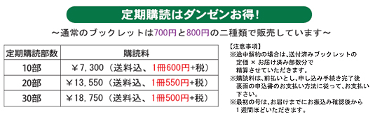 今回、このブックレットを割安の価格でお手元にお届けするため、定期購読のご案内をさせていただきます。