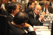 6回目となる今回のフォーラムのメインテーマは「アジアの未来と日中の貢献」。8月30日の全体会議では、主催者挨拶のほか、日本側からは仙谷由人内閣官房長官、福田康夫前内閣総理大臣、三村明夫新日鉄代表取締役会長による挨拶、基調講演が行われました。同日午後からは5つの分科会に分かれて議論が行われましたが、円卓会議方式を初めて採用し、すべての議論をインターネット中継で公開した「外交・安全保障対話」では、緊迫した状況の中で両国パネリストによる鋭い発言がテンポよくなされ、中国の軍事拡大や北朝鮮問題、そして大きなトピックとして顕在化した領土問題についても激しいやりとりが行われました。