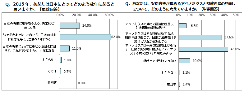entry_more=・8割を超える有識者が2015年を重要な1年になるとみており、具体的な課題として、財政再建・社会保障改革など中長期的な課題に注目する有識者が増加しました。