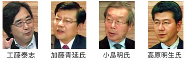 続いて、今後の日中関係に関して話が進み、加藤氏は「日本は中国を豊かにする力があり、中国も日本を豊かにする力がある」という日中の相互補完関係を改めて指摘しました。一方の小島氏は、戦後続いてきたアメリカを中心とする世界経済レジームが崩れる中で、中国の大国化と日中関係の存在感がますます大きくなってきている、と指摘し、「日本の戦後経済を客観的に学びたいと考える中国の専門家が非常に多い」と述べ、そこにこそ、日中両国の将来的な協力の広がりがあると強調しました。最後に高原氏は、日本と中国は国情、発展段階が異なることを前提に、「日本は近代化の真っただ中にある中国の実情を冷静に見定めるべきだ」と指摘、『北京―東京フォーラム』にはそうした共通認識の下で、日中両国やアジアの利益のために、冷静で真剣な議論がますます求められるだろう、と述べました。