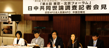 この共同世論調査は、日中両国の相互理解や相互認識の状況やその変化を継続的に把握することを目的として、2005年から日中共同で毎年行われているものであり、今回で8回目の実施となります。今回の記者会見では、この共同世論調査とあわせて行われた有識者調査(日本側)、学生調査(中国側)の結果も公表され、日中双方から詳細な説明がなされました。