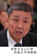 金田氏は姚氏の提案について、メカニズムを作る前提として、共通利益の追求が必要な旨を指摘。「軍事に限らずシーレーンの保全や資源の開発など協同できる分野があるのではないか。また協同作業が進み、共有する価値を持てるようになれば、関係を深めることができる」としました。さらに国際法上の裏付けも考慮すべきでは、との指摘に対して姚氏は「法律に従うことは当然だが、価値観は定義が難しい」と語りました。