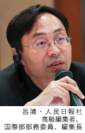 呂氏は、「メディアは客観的、全面的に相手国を報道すべきだ」と主張。「メディアが相互尊重することによって健全な輿論ができる」と2つのテーマの補完性を指摘し、「人民日報では各方面の内容を報道しており、日本の政策も日本国民の平和を望む動きもオープンに伝えている」と述べました。