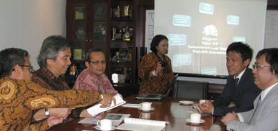 また、インドネシア外務省でバリ民主主義フォーラムや文化交流など、パブリックディプロマシーを担当しているAl Busyra Basnur氏 (Directorate General of Information andPublic Diplomacy)、アメリカ外交問題評議会が主催するシンクタンク会議(CoC)にインドネシアを代表して参加しているCSISの Philips Vermonte 氏(Head, Department of Politics and InternationalRelations)も訪問しました。Philips Vermonte 氏は、CSISが携わっているASEAN People's assemblyやASEAN Political-Security CommunityなどASEAN域内のマルチラテラルな取り組みに触れ、地域内でも市民社会の政策決定プロセスへの参加を主流化させていく動きを加速させるべき、などの意見が出されるなど、今後、東南アジアを巻き込んだ議論を行っていく上で、非常に示唆に富む有意義な会談となりました。