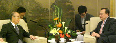 明石康実行委員長をはじめとする日本側実行委員会代表団は、4月14日に劉建超外交部部長助理を表敬訪問しました。