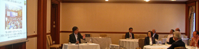 次に、「東京-北京フォーラム」や「日韓未来対話」に代表される北東アジアでの民間外交の取り組みについて紹介し、民間が当事者してこの地域の課題解決に取り組み、世論を動かすことで政府間外交を後押しするような環境づくりを行う-「言論外交(※)」の重要性とその成果について語りました。その上で、日中関係に改善の兆しが見え始めた今、10月23日から25日にわたって開催される「第11回東京-北京フォーラム」や米国との対話(10月下旬開催)などの趣旨を説明し、参加と協力を求めました。