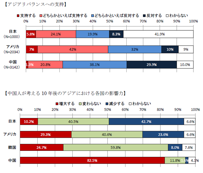 この北東アジアでは、中国の発展に伴うアジアの変化について、国民間の認識差が広がっており、政府レベルの同盟国間の協力の問題や紛争の危険性に関して、国民が懸念を強めている、ことも明らかになっている。